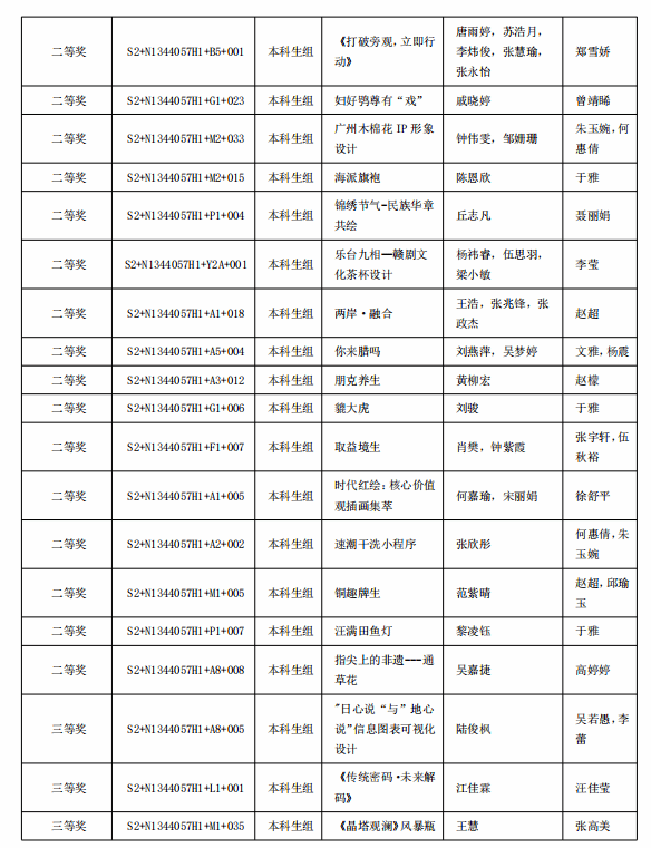 beat365官网本科生团队在专业老师张高美、徐舒平、高婷婷,徐莹君、何媛、何惠倩,朱玉婉、马瑞、候震、李莹、于雅、赵超、张宇轩、伍秋裕、郑雪娇、曾靖睎、聂丽娟、赵檬、文雅、杨震、吴若愚、李 蕾、汪佳莹、石晓宇、邱瑜玉老师的悉心指导下,凭借出色的创意和扎实的专业功底,脱颖而出,斩获国家级赛8项大奖。荣获一等奖2项,二等奖2项,三等奖4项,省级赛50项大奖。荣获一等奖12项,二等奖17项,三等奖21项,陈彩云 、张高美、徐舒平老师获优秀组织教师,beat365在线唯一官网凭借优异成绩获优秀组织单位。