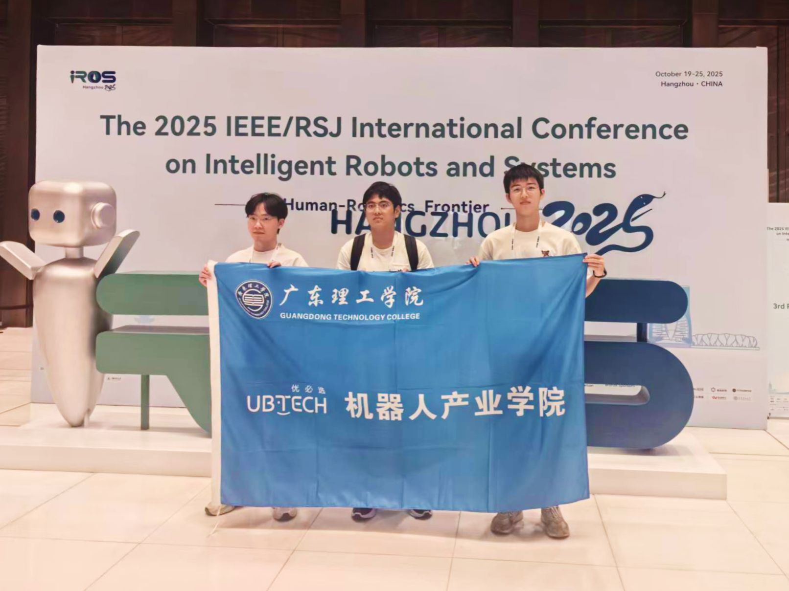 本网讯 近日,全球智能机器人领域顶级盛会——2025年IEEE/RSJ 国际智能机器人与系统会议(IROS2025)在杭州举办。作为机器人领域最具影响力的国际会议之一,IROS 2025汇聚了来自全球的6000余名顶尖专家、学者和企业代表,共论AI与机器人技术深度融合,同期还举办“2025 IROS Competition”RoboCom国际公开赛,我院学子余金源、吴宗霖、叶宝华在10月21日的IROS 2025「Future of Robo」全球挑战赛中斩获二等奖。