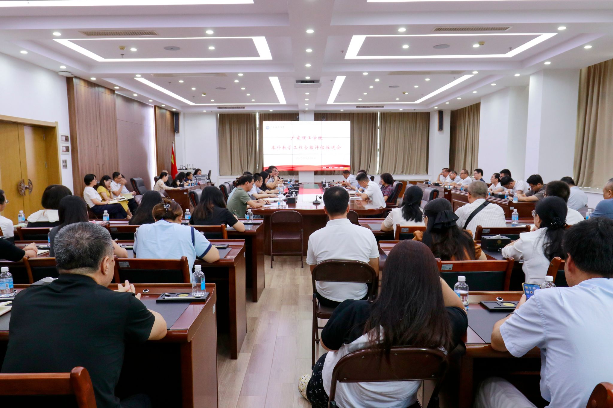 本网讯(教学质量监测与评估中心)9月28日上午,学校在高要校区综合楼12楼会议室召开本学期第5次本科教学工作合格评估推进会。全体校领导、党群及行政管理服务部门主要负责人、各教辅单位主要负责人、各教学单位党政领导班子、教学质量监测与评估中心全体成员参加会议,会议由常务副校长柴维斯主持。