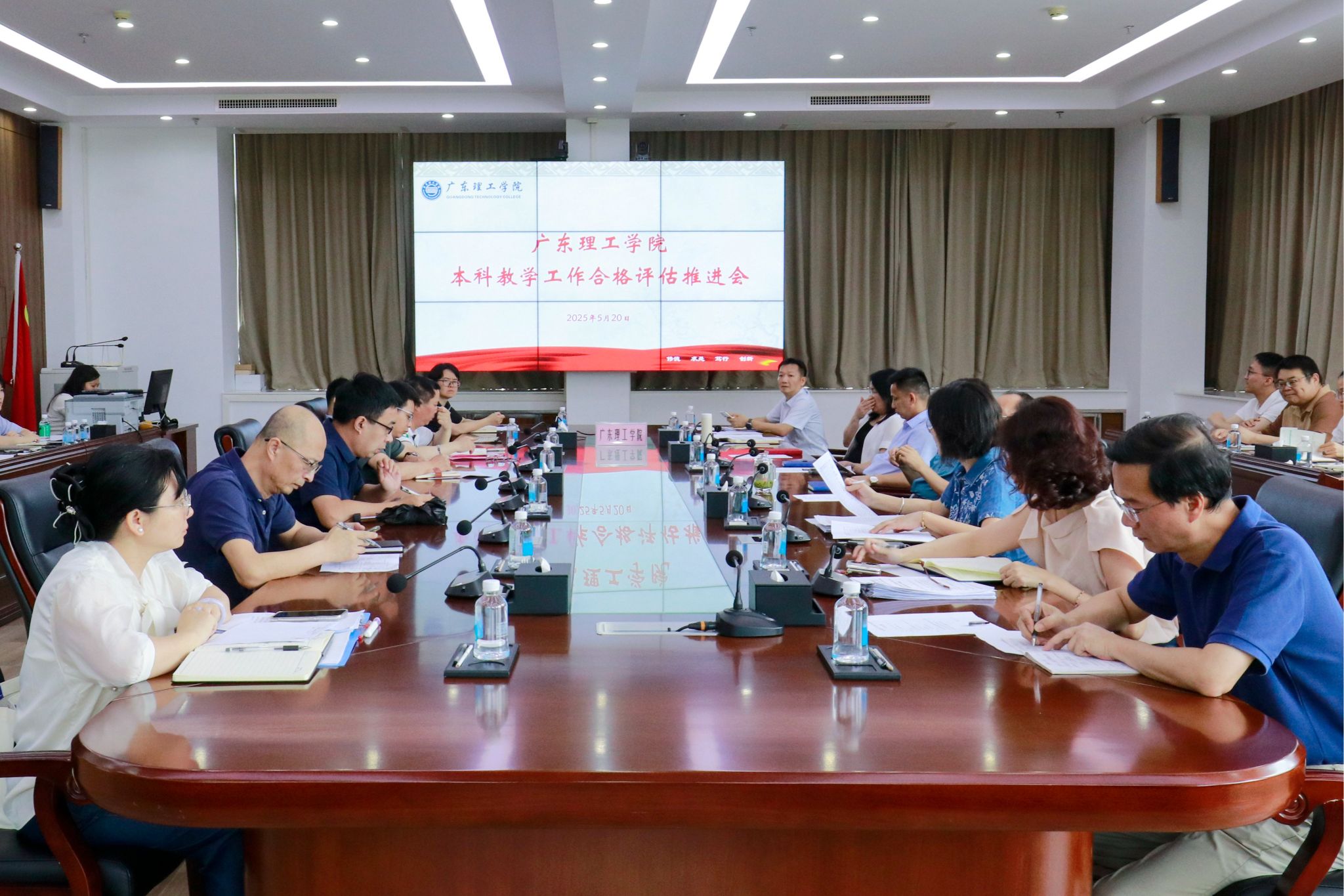 本网讯(教学质量监测与评估中心)5月20日上午,学校在高要校区综合楼12楼会议室召开本学期第4次本科教学工作合格评估迎评推进会。在校的全体校领导、党群及行政管理服务部门主要负责人、教辅单位主要负责人、教学单位党政主要负责人、二级学院副院长、教学质量监测与评估中心全体成员参加会议,会议由学校常务副校长柴维斯主持。柴维斯首先通报了截至5月19日学校的教学日常运行支出财务入账情况及各部门、单位的完成情况,同时...