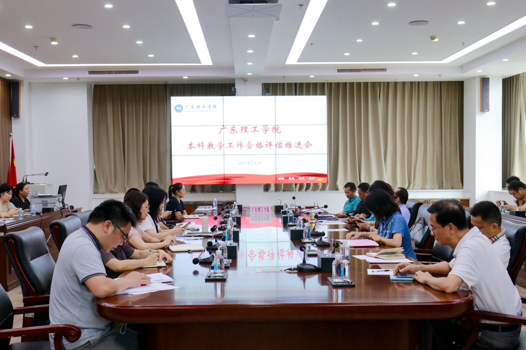 本网讯(教学质量监测与评估中心)7月1日上午,学校在高要校区综合楼12楼会议室召开本学期第7次本科教学工作合格评估推进会。中国科培教育集团李艳总裁、全体校领导、党群及行政管理服务部门与教辅单位主要负责人、各教学单位党政领导班子、教学质量监测与评估中心全体成员参加会议,会议由学校常务副校长柴维斯主持。柴维斯首先通报了截至6月30日学校的教学日常运行支出财务入账情况及各部门、单位的完成情况,充分肯定了各部...
