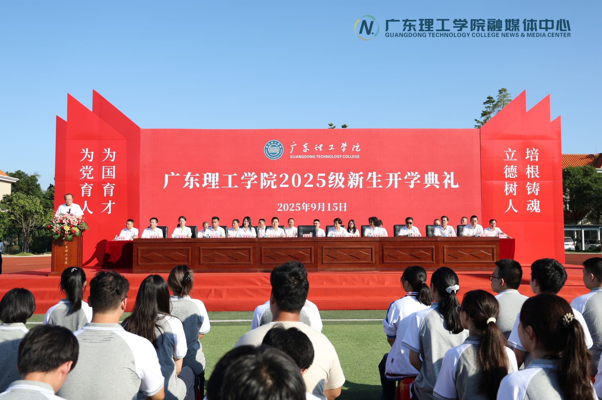 本网讯(新闻中心 丘邦诚/宋婷婷/郭文静)9月15日,beat365官网高要、鼎湖两校区分别举行2025级新生开学典礼。全体新生在田径运动场完成“大学第一课”,校党委书记胡海建、校长陈晓阳携校领导班子成员、二级学院及相关职能部门负责人出席典礼,与师生共同见证新广理人扬帆起航。副校长刘香萍主持仪式。典礼在庄严的国歌声中拉开帷幕。现场气氛庄重而热烈。陈晓阳在两校区分别以《珍惜大学时光,练就过硬本领》《珍惜大学时光,成就卓...