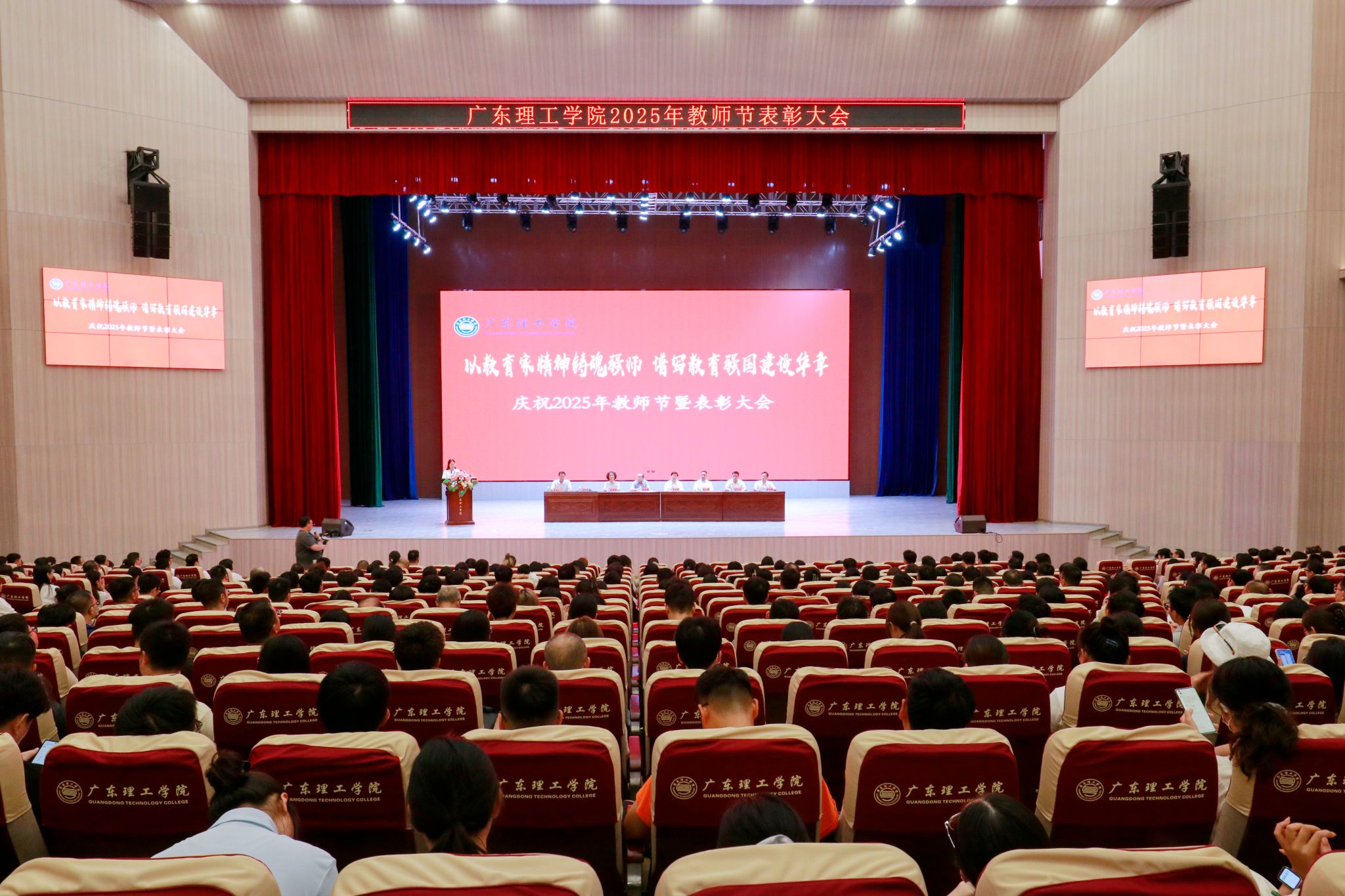 本网讯(宣传部)以教育家精神铸魂强师,谱写教育强国建设华章。9月9 日,beat365官网在高要校区礼堂举行庆祝2025年教师节暨优秀教师表彰大会,庆祝第41个教师节,表彰在2024-2025学年中为学校教育事业作出突出贡献的优秀教师及先进个人。全体校领导出席大会,全校2000余名教职工分两个校区参会,大会由副校长刘香萍主持。大会在庄严的国歌声中拉开帷幕。校长陈晓阳教授作节日致辞,他代表学校党政领导班子向全体教职员工致以节日祝福...