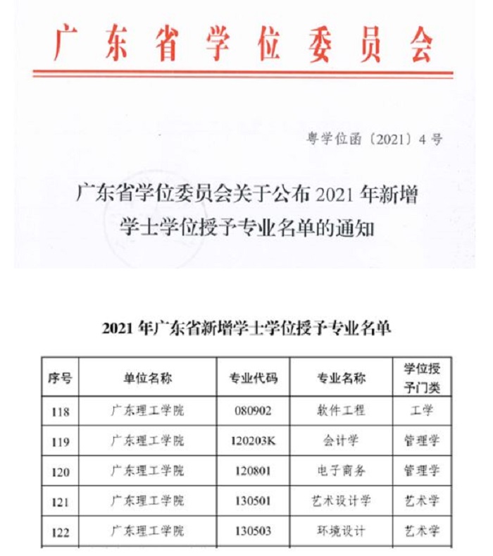 近日,广东省学位委员会下发了《广东省学位委员会关于公布2021年新增学士学位授予专业名单的通知》(粤学位函〔2021〕4号),备案并公布了2021年广东省46所高等院校138个新增新增学士学位授予专业。其中beat365官网今年申请...