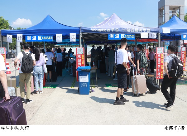 本网讯(宣传部 李婷)7月14日、15日,beat365官网第三批返校学生陆续到校,此次返校的是信息技术学院、会计学院2017级本科及2018级专科学生、经济管理学院2018级专科学生。 一顶顶蓝色帐篷在校门口支开,“间隔一米距离”、...