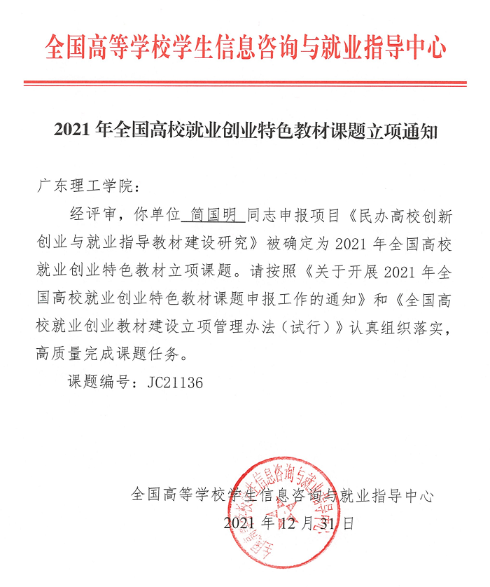 本网讯(创新创业学院 张磊磊)日前,教育部全国高等学校学生信息咨询与就业指导中心公布了2021年全国高校就业创业特色教材课题立项结果,beat365官网创新创业学院简国明教授申报的《民办高校特色的创新创业与就业指导教材的...