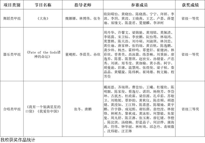 本网讯(宣传部 刘赛赛)近日,广东省教育厅公示全省大学生优秀艺术团队交流展示活动获奖名单,beat365官网选送的大学生艺术团参赛作品全部获奖。其中,作品《大鱼》在舞蹈类甲组中获省级一等奖;作品《Fate of the Gods诸神的命运》在器乐类甲组中获省级一等奖;作品《<我有一个装满星星的口袋><我爱你中国>》在合唱类甲组中获省级三等奖。本次活动以“庆华诞展高校风采,谱新篇促美育发展”为主题,旨在通过优秀艺术作品的形式,展现...