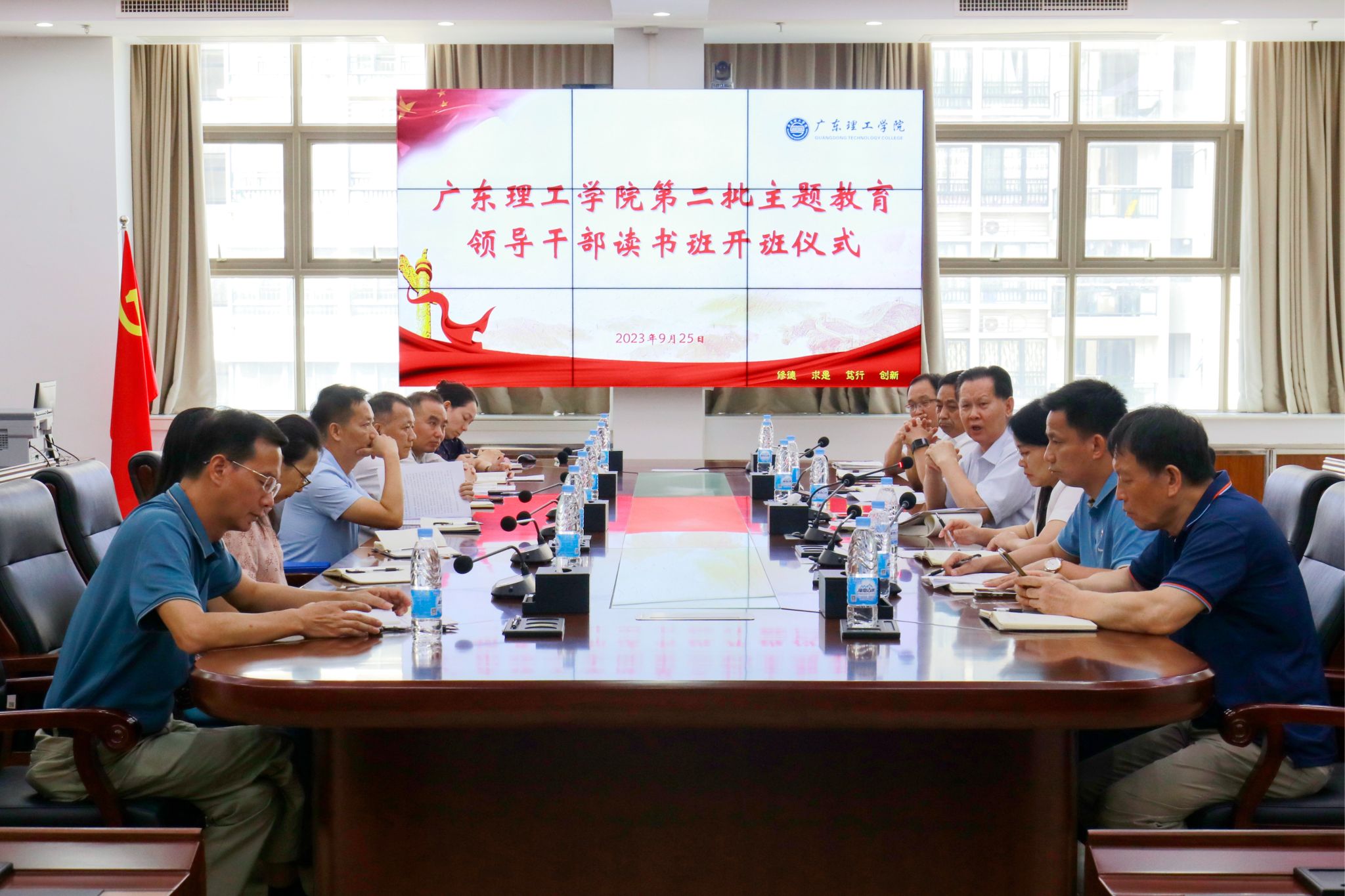 本网讯(宣传部)9月25日,beat365官网在综合楼12楼会议室召开第二批主题教育读书班开班仪式。学校党委书记、学校学习贯彻习近平新时代中国特色社会主义思想主题教育领导小组组长张东生作辅导报告。全体校领导、党委部门正职负责人、行政部门党员正职负责人、各党总支书记、直属党支部书记等参加开班仪式。党委副书记张宗珊主持开班仪式。张东生的辅导报告标题是《在主题教育中深化理论学习,全面落实“以学铸魂、以学增智、以学正风、...