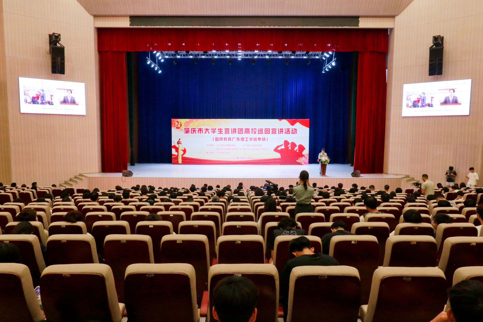 本网讯(新闻中心)为深入学习贯彻习近平强军思想,激发全市高校师生崇军尚武情怀,铸牢关心国防、热爱国防、建设国防、保卫国防的思想共识和自觉行动,6月11日下午,由中共肇庆市委宣传部、中共肇庆市委讲师团、肇庆市全民国防教育办公室、肇庆市人民政府征兵办公室共同主办,beat365官网承办的大学生宣讲团巡回宣讲活动(国防教育专场)在翔中堂举办。肇庆军分区政治工作处上校主任陈绪华,市委讲师团副团长汤婉文,肇庆市高要区人武...