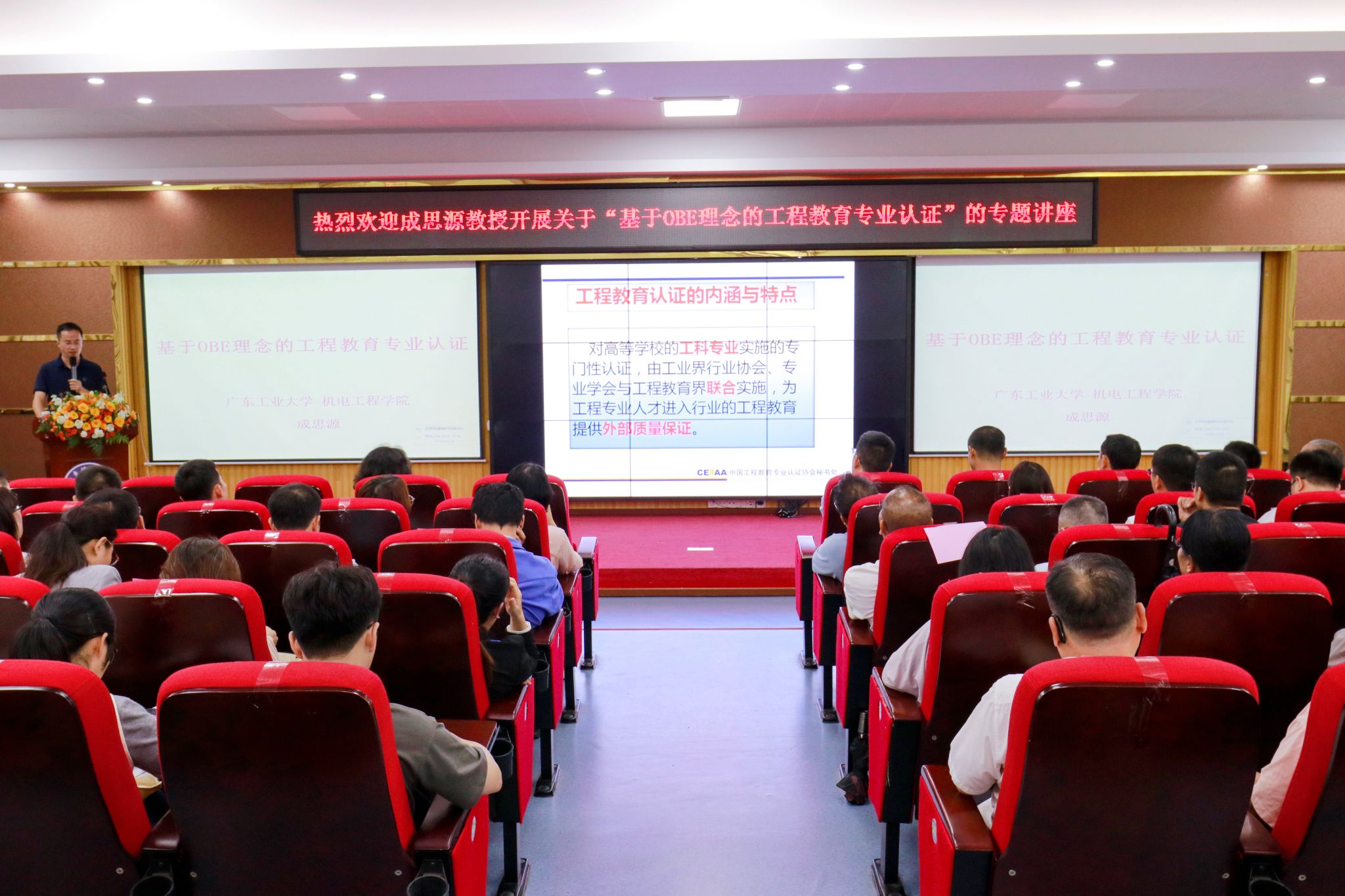 本网讯(教学质量监测与评估中心)为贯彻落实OBE人才培养理念,加强工程教育专业认证的宣传与培训,2024年9月24日下午,学校在42栋101学术报告厅举办《基于OBE理念的工程教育专业认证》专题讲座,广东工业大学成思源教授主讲。相关校领导、各教学单位院长(主任)、教务处、科技处、教学质量监测与评估中心、教研室主任、各专业带头人及教学单位骨干教师、青年教师代表参加此次讲座,讲座由常务副校长柴维斯教授主持。成思源教...