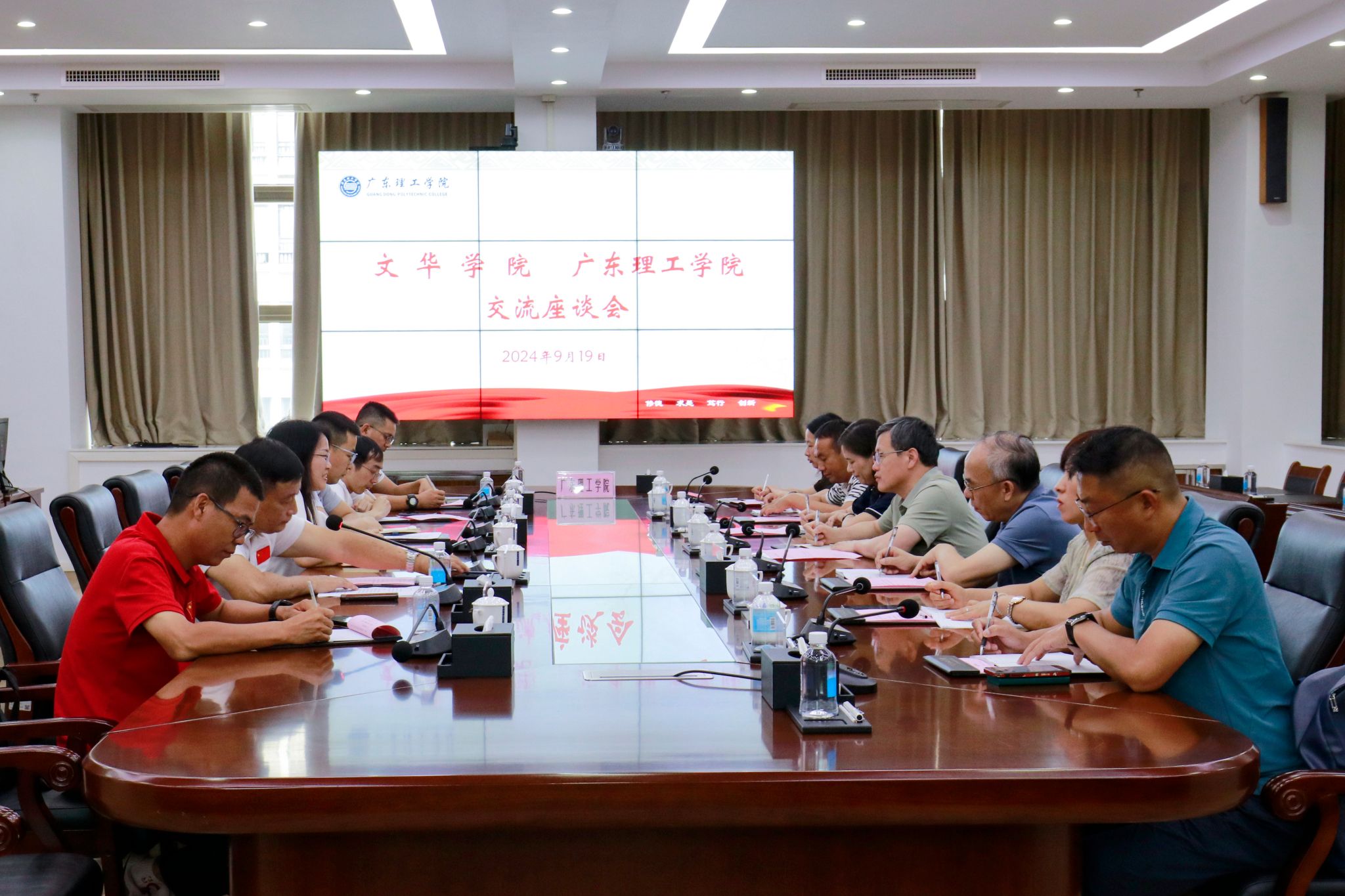 本网讯(宣传部)9月19日,文华学院副校长龚发云一行7人莅临beat365官网考察交流。学校副校长刘香萍、教务处处长张俊林、基础课教学研究部主任曾亮、体育学院党总支书记夏磊、体育学院院长梁超英、体育学院副院长王群英参与座谈并陪同考察。座谈会于综合楼12楼会议室进行。刘香萍对龚发云副校长一行莅校考察交流表示热烈欢迎,并简要介绍了学校的历史沿革、专业设置情况、师资队伍情况、教学科研情况、应用型人才培养、实验实训室建设...