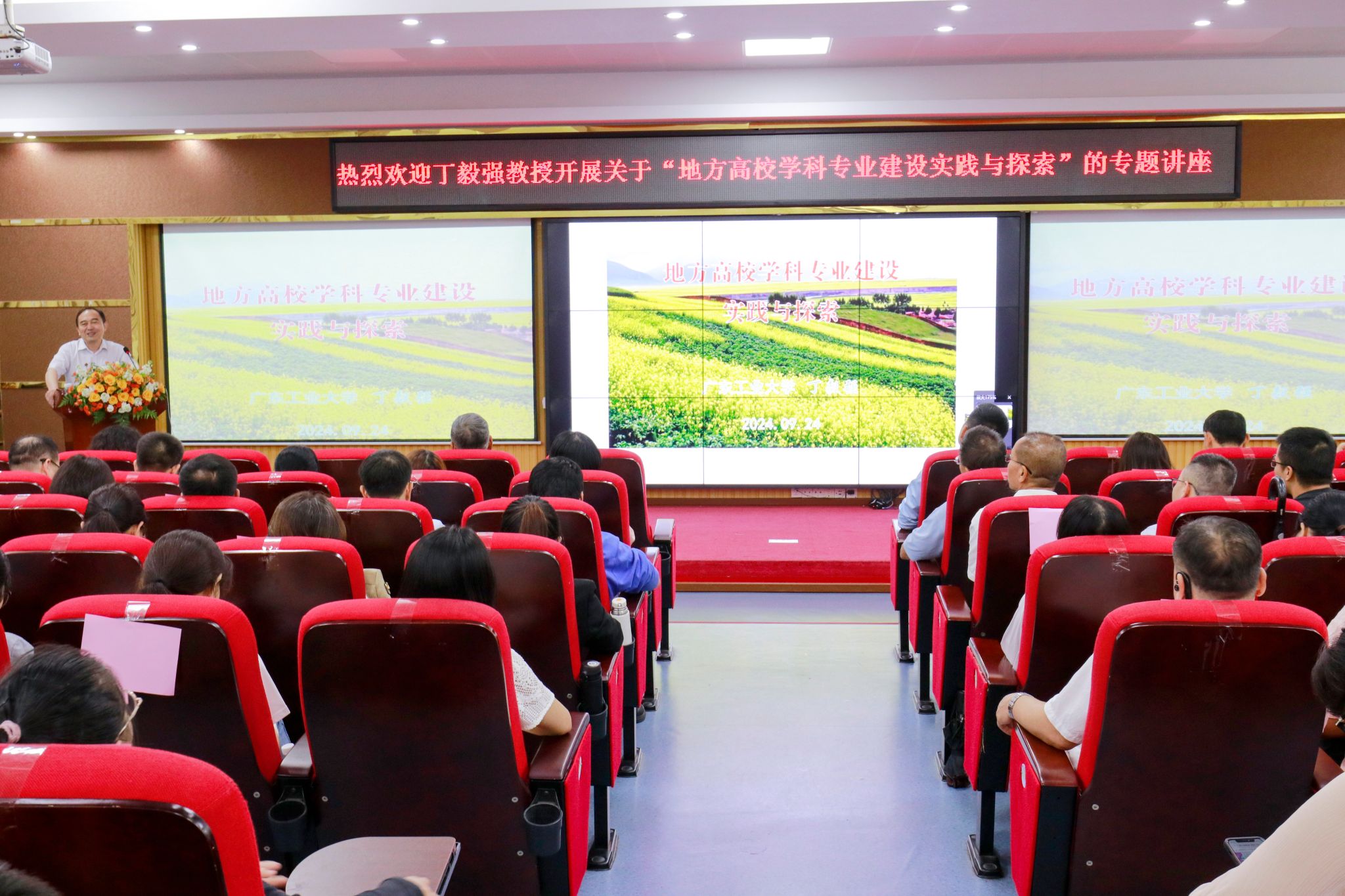 本网讯(科技处)为贯彻落实党的二十届三中全会精神,不断提高教师队伍素质水平,共同为beat365官网学科建设高质量发展打开新局面、增添新活力,2024年9月24日下午,学校邀请广东工业大学原学位办主任丁毅强教授作“地方高校学科专业建设实践与探索”专题讲座。本次会议在42栋101学术报告厅举行,学校领导、各教学单位院长(主任)、教研室主任、各专业带头人及教学单位骨干教师、青年教师等共260余人参会,会议由学校常务副校长柴维斯...