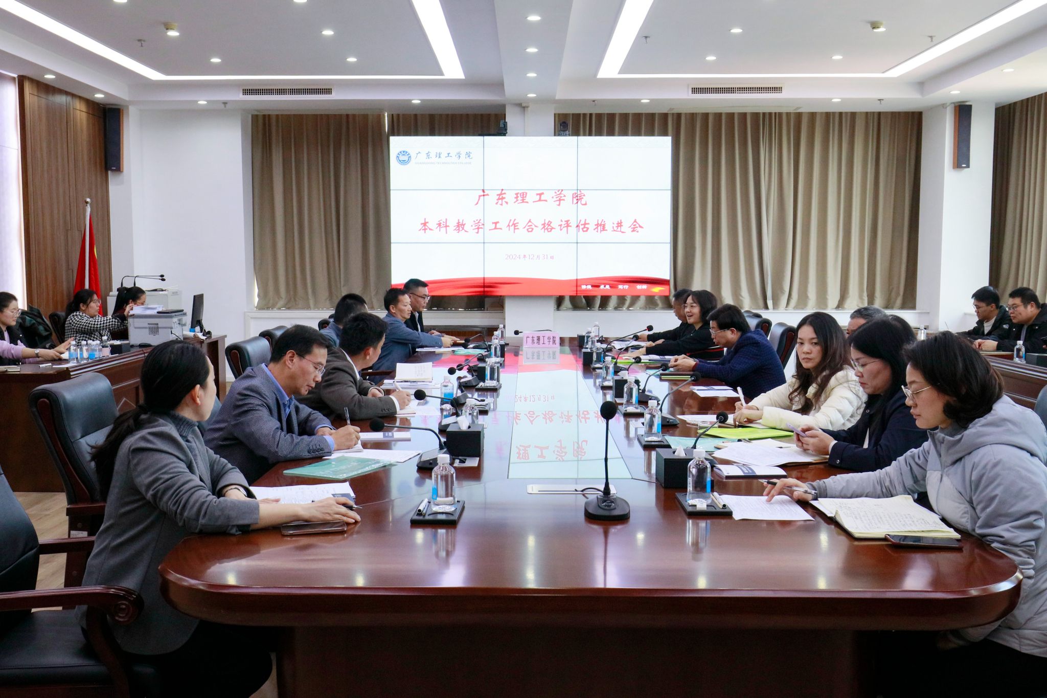 本网讯(教学质量监测与评估中心) 为进一步推进本科教学工作合格评估迎评工作,12月31日下午,学校在高要校区综合楼12楼会议室组织召开本科教学工作合格评估推进会议,学校领导、各教学单位党政主要负责人、各行政部门主要负责人参加会议,会议由柴维斯常务副校长主持。唐建宁副校长首先介绍了学校师资总体情况,强调了建立稳定师资队伍的重要性。她提到,学校目前拥有一定数量的专任教师,并介绍了全校及各专业的生师比情况。...