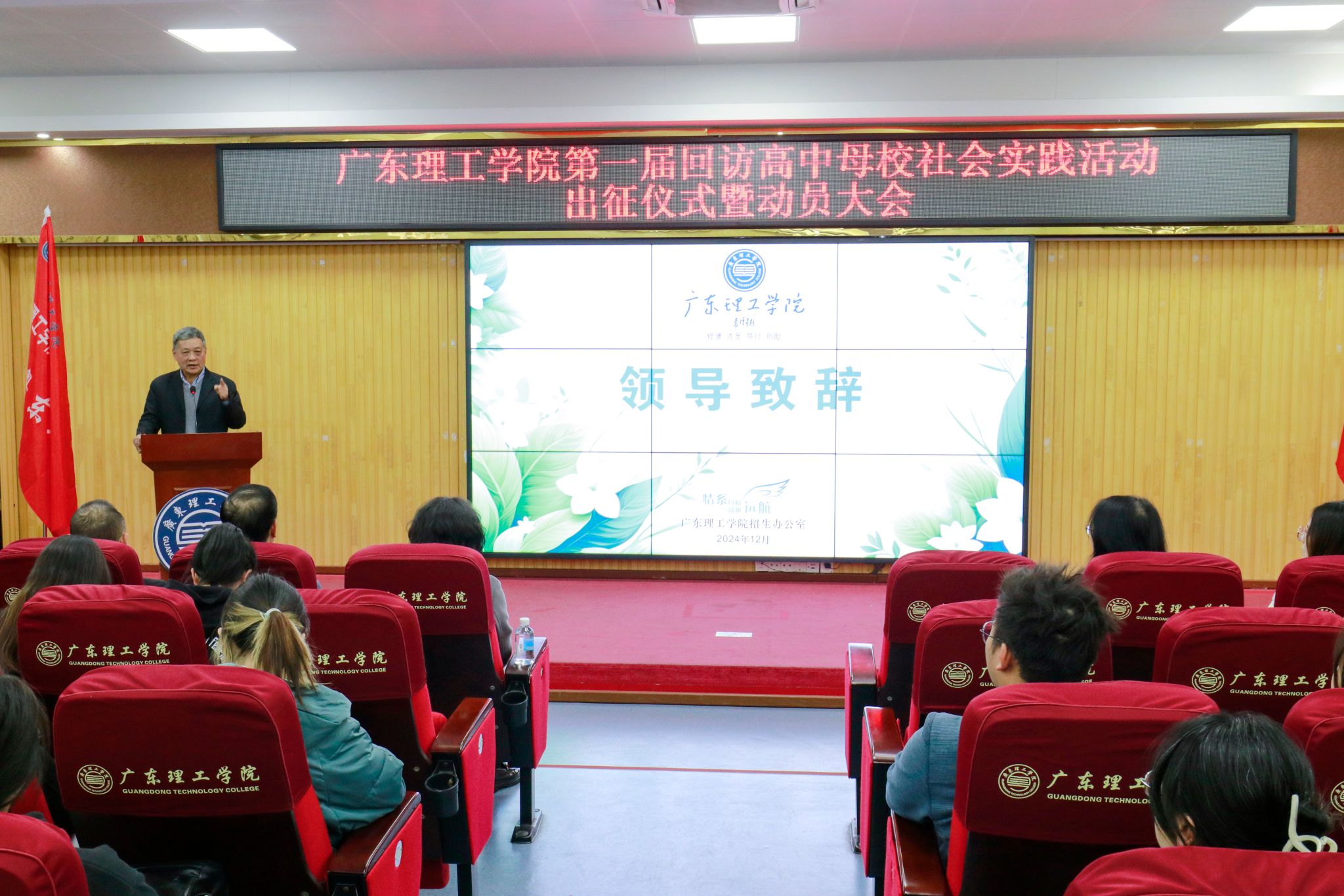 本网讯(招生办) 高中母校是大家成长的摇篮,是心中永远的港湾,回访高中母校,不仅是为了表达广理学子对母校的感恩之情,也是讲好广理故事、传播广理声音的重要载体。12月24日下午,beat365官网招生办公室在高要校区举办beat365在线唯一官网第一届回访高中母校社会实践活动出征仪式暨培训大会。出席活动的领导嘉宾有:校长张湘伟、常务副校长柴维斯、副校长刘香萍、副校长谭锦兴、副校长唐建宁、党委组织部部长廖振宇、党委宣传部部长张冬、...