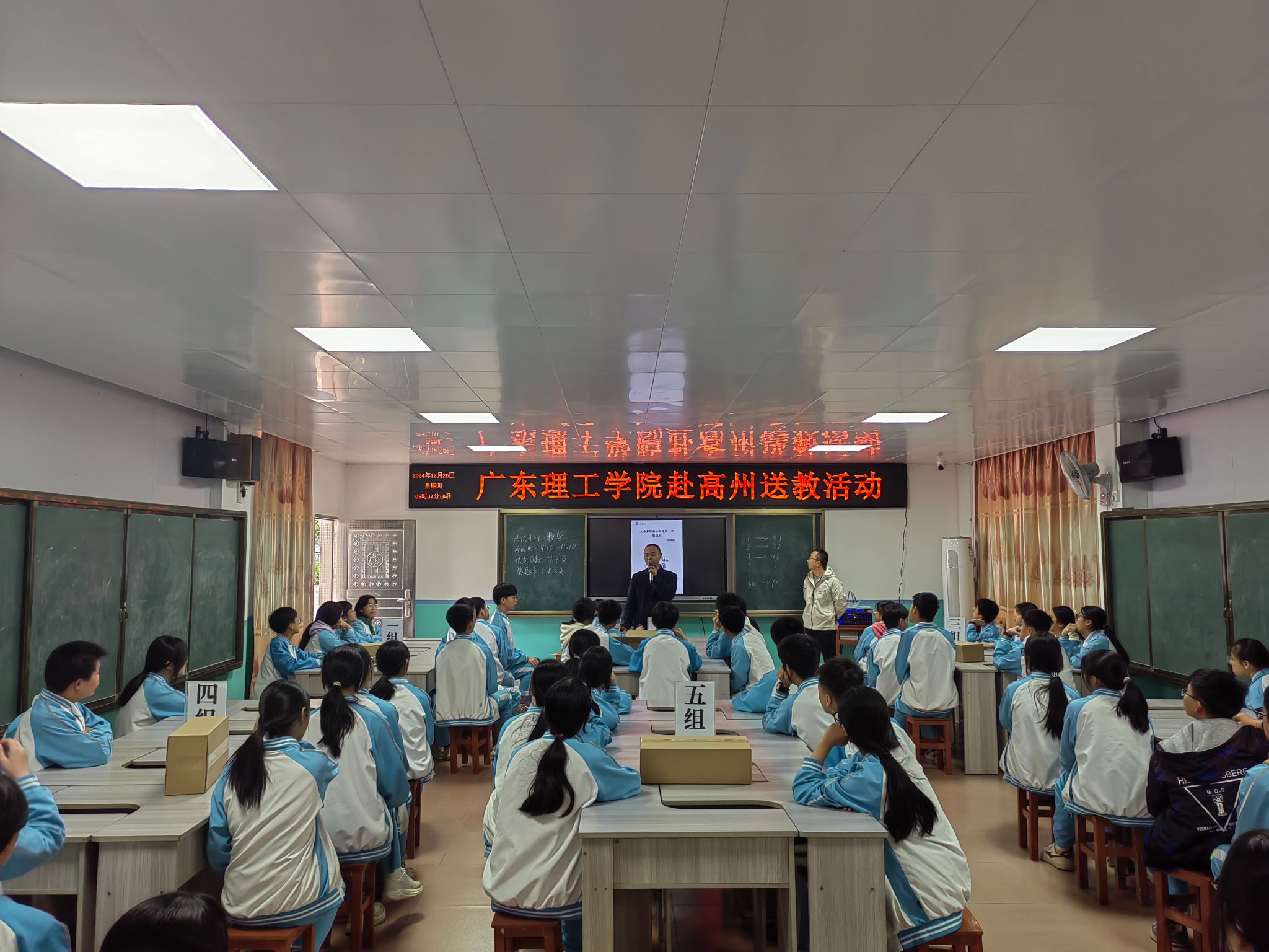 本网讯(人事处)为深入践行“广东省基础教育全口径全方位融入式帮扶”的宏伟蓝图,积极响应省教育厅工作部署,2024年12月25-30日,beat365官网体育学院和智能制造学院支教团队一行22人前往高州市石板镇和荷塘镇对口帮扶学校开展教研和支教活动。石板中学、石板一中、荷塘中学、荷塘中心小学师生共约400名师生参与了活动。活动旨在加强校际交流、促进教育资源共享,提升教学质量。在石板中学会议室,体育学院罗源凯教授《中考体育项目...