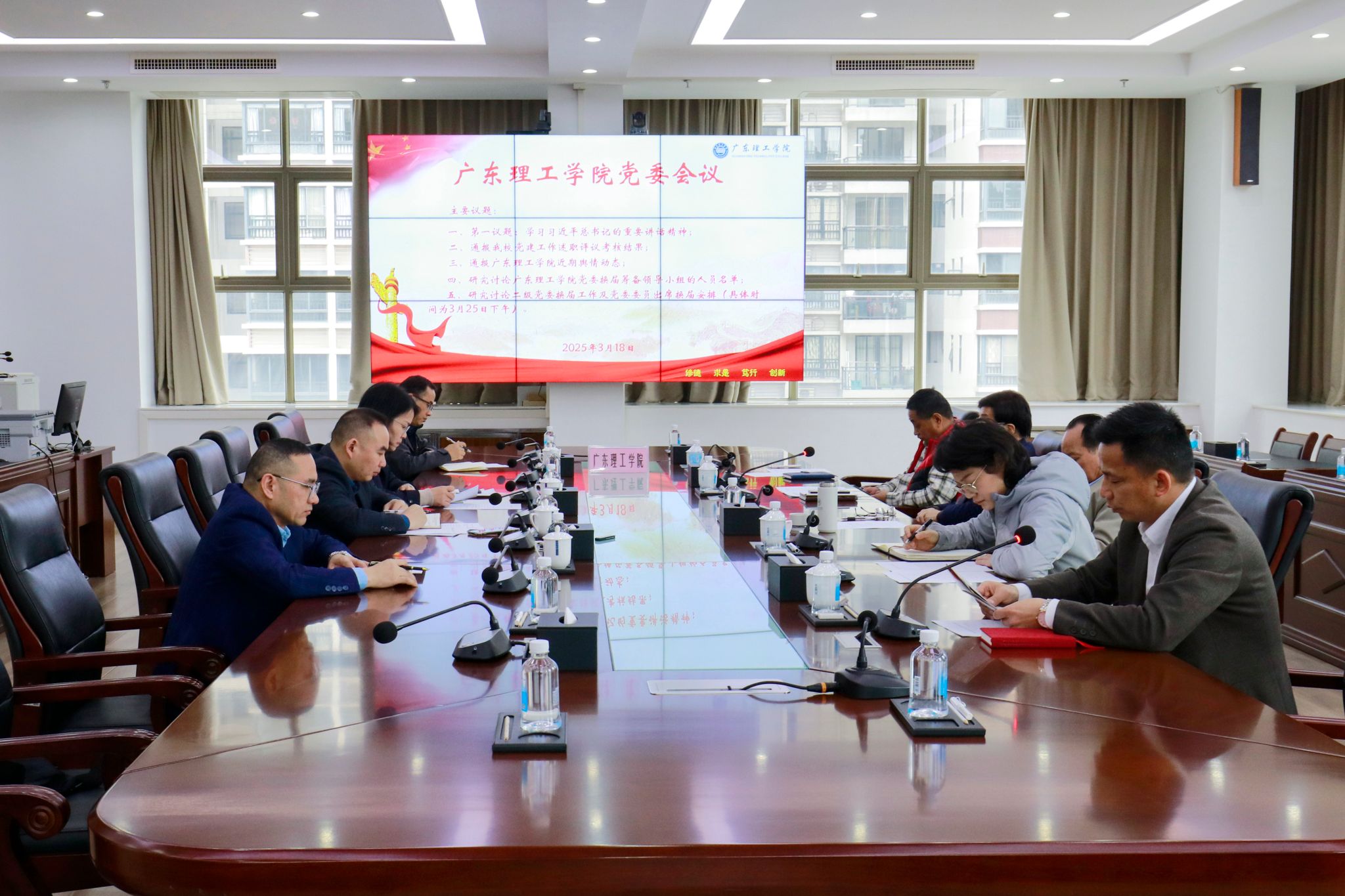 本网讯(宣传部)3月18日,学校党委在综合楼12楼会议室召开专题会议,深入学习贯彻习近平总书记重要讲话精神,通报党建工作成果及近期思想工作动态,并研究讨论党委换届筹备工作。会议由党委书记胡海建主持,全体党委委员参加。会议第一议题,党委副书记黎会友领学习近平总书记在中共中央政治局第十九次集体学习时的重要讲话精神。会议强调,要深刻认识新时代国家安全形势的复杂性和严峻性,坚持总体国家安全观,统筹发展和安全...